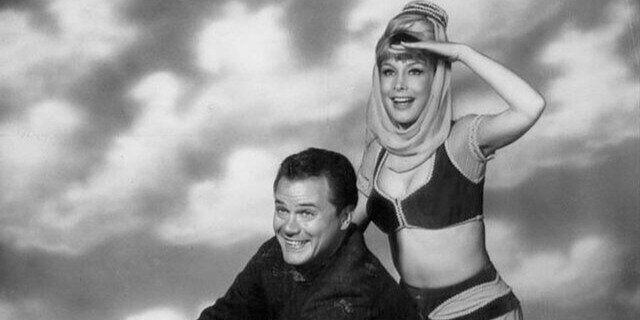 Which Series Features A Genie Who Lives In A Bottle And Calls An Astronaut “Master”?